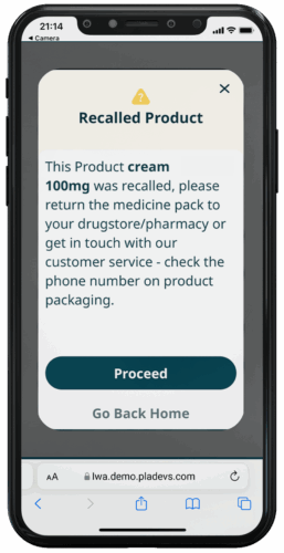 It’s important that at no point is patient or user information captured. The patient’s use of the app to identify the product and access the information is private information. The product owner will not have any scan information to identify the user in any way, as this is private information.